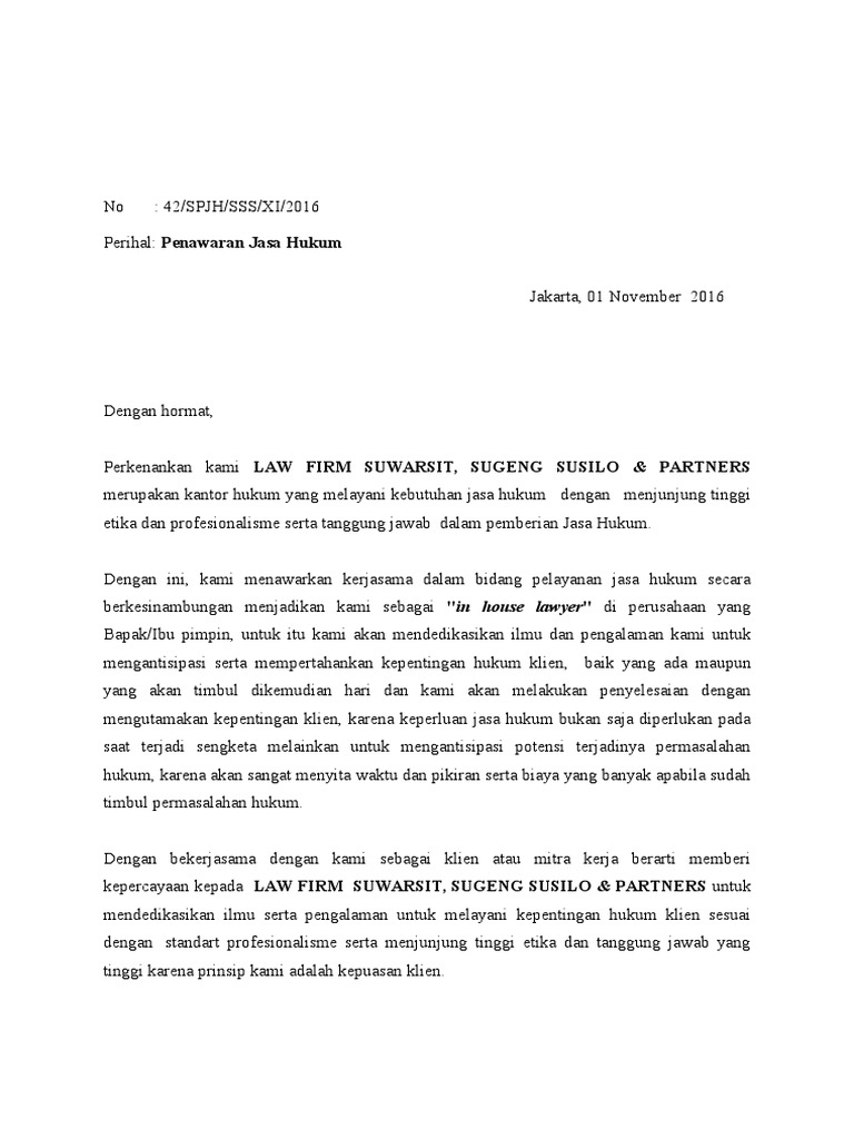 Pihak p ertama berkewajiban memberikan honor/imbalan jasa konsultasi /bantuan h ukum kepada pihak kedua sebesar.(nominal perjanjian jasa hukum). Contoh surat penawaran jasa hukum download contoh lengkap gratis. Contoh surat kerjasama travel dengan hotel have an image associated with the other.contoh surat kerjasama travel dengan hotel in addition, it will include a picture of a sort that might be observed in the gallery of contoh surat kerjasama travel dengan hotel. Fellia dilla a nim : Surat perjanjian kerjasama, prosedur, dan contohnya.
